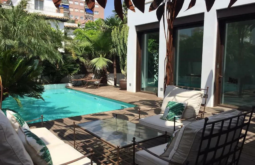 La la casa de las pergolas Sevilla está situada en el barrio Bellavista - Palmera de Sevilla, a unos 5 minutos a pie del Estadio Benito Villamarín, y ofrece vistas al jardín. Esta villa espera a los huéspedes en una terraza con una piscina.